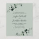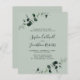 Elegante Típografía De Guión Elegante Invitación a la Recepción de Boda... Nuestra asequible invitación a bodas botánicas en verde sabio incluye elegantes ramas de eucalipto con salvia y hojas de color esmeralda creando un borde natural para el texto de invitación dentro. La parte posterior de la tarjeta contiene la dirección URL de su sitio web boda y un ejemplo de gráfico de código QR que puede reemplazar fácilmente con su propia información al mismo tiempo que está revisando el texto. Todo el texto de ejemplo se puede revisar fácilmente con sus propios detalles en la plantilla de personalización. Esta invitación a la recepción de estilo moderno ha sido diseñada para que sea elegante y ahorre tiempo, especialmente para futuras novias.