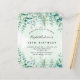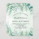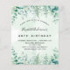 Una invitación a la moda para una fiesta de cumpleaños número 40 (o de cualquier edad), temática forestal encantada. Fondo de color verde acuático con helechos y eucalipto. El nombre está escrito con una escritura de estilo con letras a mano moderna. Personalice y agregue los detalles de su fiesta.