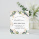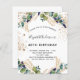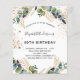 Para una fiesta de cumpleaños número 40 (o cualquier edad). Un fondo blanco decorado con vegetación eucaliptos y hojas doradas. Decorado con puntos purpurinas dorados. Personalice y agregue sus nombres y detalles del boda. Letras de color negro y dorado.