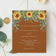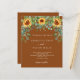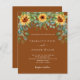 Un fondo color burregal marrón decorado con girasoles, vegetación eucaliptica. Personalice y agregue sus nombres y detalles del fiesta. 1 hoja = 1 borde impreso de invitación al borde.