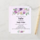 Un fondo violeta y lavanda acuático. Decorada con flores y vegetación violeta y violeta de color acuático y con una cruz dorada. Personalice y añada un nombre y detalles de recepción. 1 hoja = 1 borde impreso de invitación al borde.