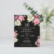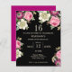 Personalizable de papel asequible invitaciones de 16 años con rosas de acuarela de bonito, anémonas y clematis sobre fondo negro. En tonos magenta, rosa, violeta y crema.