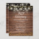 Con luces de cuerdas y delicados corazones de amor dorados se confetti en un ambiente rústico de madera. Personalice con su especial información de 50 años de oro en letras de moda. Diseñado por Thisisnotme©