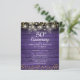 Con luces de cuerda y delicados corazones de amor dorados se confetti en un ambiente rústico de madera violeta. Personalice con su especial información de 50 años de oro en letras de moda. Diseñado por Thisisnotme©