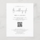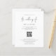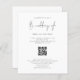 Un precio económico menor de 4,5 x 5,6" y semibrillo de 110 libras, similar en grosor a una postal. Hay UNA por hoja. Invitación a matrimonio de código QR con escritura moderna de presupuesto. Añade tu código QR a tu sitio web boda para que tus invitados puedan ver todos los detalles en línea sin necesidad de gabinetes separados. Una tipografía de conjunto informal en negro para el encabezado principal el Boda de complementar el resto del texto que se puede personalizar fácilmente.