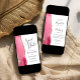 El borde izquierdo de esta elegante y moderna invitación a la boda incluye una acuarela rosa bordeada por un falso purpurina de oro. El texto del personalizable combina escritura a mano, copperplate y cursiva en gris carbón sobre fondo blanco. El lado inverso proporciona espacio para los detalles del boda sobre un fondo blanco sólido, junto con un código QR que los huéspedes pueden explorar para visitar su sitio web y RSVP, lo que ahorra el coste de imprimir y enviar por correo tarjetas RSVP separadas. NOTA: Los sobres no se incluyen automáticamente con estas invitaciones presupuestarias, así que por favor recuerde elegir la opción "sobres blancos".