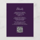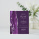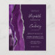 El borde izquierdo de esta elegante y moderna invitación a la boda incluye un borde de ágata color púrpura adornado con un falso purpurina de plata. El texto del personalizable combina escritura a mano, copperplate y cursiva en gris plateado sobre un fondo violeta profundo. El reverso proporciona espacio para los detalles del boda sobre un fondo morado sólido, junto con un código QR que los huéspedes pueden explorar para visitar su sitio web y RSVP.