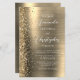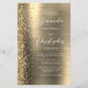 El borde izquierdo de esta elegante y moderna invitación a la boda incluye un purpurina de imitación dorada. El texto del personalizable combina la escritura a mano en blanco, las fuentes de copperplate y cursiva en un fondo metalizado de imitación de color dorado. El reverso proporciona espacio para los detalles del boda en un fondo metalizado dorado, junto con un código QR que los huéspedes pueden explorar para visitar su sitio web y RSVP, lo que ahorra el coste de imprimir y enviar tarjetas RSVP separadas.