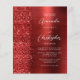 El borde izquierdo de esta elegante y moderna invitación a la boda incluye un borde falso purpurina rojo. El texto del personalizable combina la escritura a mano blanca, la copperplate y las letras cursivas en un fondo metalizado rojo falso. El reverso proporciona espacio para los detalles del boda en un fondo metalizado rojo cepillado, junto con un código QR que los huéspedes pueden explorar para visitar su sitio web y RSVP, lo que ahorra el coste de imprimir y enviar tarjetas RSVP separadas.