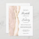 El borde izquierdo de esta elegante y moderna invitación a la boda se caracteriza por un borde de aguate acuarela en tonos marfil y rubor, adornado con un falso purpurina de oro. El texto del personalizable combina escritura a mano, copperplate y cursiva en gris carbón sobre fondo blanco. El lado inverso proporciona espacio para los detalles del boda, junto con un código QR que los huéspedes pueden explorar para visitar su sitio web y RSVP, lo que ahorra el costo de imprimir y enviar tarjetas RSVP separadas. NOTA: Los sobres no se incluyen automáticamente con estas invitaciones presupuestarias, así que por favor recuerde elegir la opción "sobres blancos".