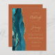 Ahorre el coste de imprimir y enviar por correo tarjetas RSVP independientes con esta elegante y moderna invitación a boda todo en uno. El borde izquierdo tiene una verde azulada agata de color azul bordeada por un purpurina de imitación dorado. El texto del personalizable combina la escritura a mano de color dorado, las fuentes de copperplate y cursiva en un naranja quemado o fondo de roya. El reverso proporciona espacio para los detalles del boda en un fondo naranja quemado sólido, junto con un código QR que los huéspedes pueden explorar para visitar su sitio web y RSVP.