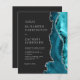 El borde derecho de esta elegante y moderna invitación a la boda incluye un verde azulado borde de batido azul con pintado de purpurina de plata. El texto del personalizable combina serif de color gris plateado, copperplate y fuentes cursivas sobre un fondo negro de pizarra. El reverso proporciona espacio para los detalles del boda sobre un fondo negro de pizarra sólida, junto con un código QR que los huéspedes pueden explorar para visitar su sitio web y RSVP, lo que ahorra el coste de imprimir y enviar tarjetas RSVP separadas.