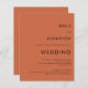 Texto simple Invitación a matrimonio de código QR de Terracota. Una alternativa económica para SMALLER de 4,5" x 5,6". Disponible en un ALMACENAMIENTO DE TARJETAS SEMI GLOSS 110 lb o en un SATIN FINISH DE PAPEL DELGADO DE 80 lb. Añada su código QR a su sitio web boda en la parte posterior, lo que hace que sea una opción conveniente para sus invitados a RSVP y vea todos los detalles sin necesidad de tarjetas de detalles y RSVP separadas. Este minimalista diseño de terracota tiene una tipografía simple en negro que usted puede personalizar fácilmente. También puede cambiar el texto y los colores de fondo de cada lado para que coincidan con el tema boda si lo desea a través del Personalizar. Si necesitas ayuda con esto, por favor envíame un mensaje.
