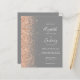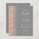 El borde izquierdo de esta elegante y moderna invitación a la boda incluye una falda de melocotón en la frontera purpurina. El texto del personalizable combina la escritura a mano en blanco, la copperplate y las letras cursivas en un fondo gris. El reverso proporciona espacio para los detalles del boda en un fondo gris sólido, junto con un código QR que los huéspedes pueden explorar para visitar su sitio web y RSVP, lo que ahorra el coste de imprimir y enviar por correo tarjetas RSVP separadas.