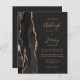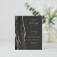 Ahorre el coste de imprimir y enviar por correo tarjetas RSVP independientes con esta elegante y moderna invitación a boda todo en uno. El borde izquierdo tiene un borde de agujeros de color negro recortado con un purpurina de imitación dorado. El texto del personalizable combina la escritura a mano de color dorado, las fuentes de copperplate y cursiva sobre un fondo negro de pizarra. El reverso proporciona espacio para los detalles de los bodas sobre un fondo negro de pizarra sólida, junto con un código QR que los huéspedes pueden explorar para visitar su sitio web y RSVP.