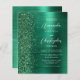 El borde izquierdo de esta elegante y moderna invitación a la boda incluye un borde falso purpurina verde esmeralda. El texto del personalizable combina la escritura a mano blanca, la copperplate y las tipografías cursivas en un fondo metalizado de imitación verde esmeralda. El reverso proporciona espacio para los detalles del boda en un fondo metalizado verde cepillado, junto con un código QR que los huéspedes pueden explorar para visitar su sitio web y RSVP, lo que ahorra el coste de imprimir y enviar tarjetas RSVP separadas.