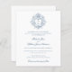 Esta invitación a una boda económica presenta un diseño sofisticado con un escudo de inspiración vintage adornado con detalles botánicos intrincados y un monograma de personalizable, que ofrece una elegancia atemporal en un formato compacto. La refinada combinación de tipos de letra serif clásicos y de escritura fluida transmite una sensación de formalidad y romance, mientras que la paleta de colores azul suave realza la estética elegante y tradicional. La parte trasera de esta opción más pequeña y económica está en blanco. Perfecto para parejas que buscan una elegancia asequible sin comprometer el estilo, esta invitación equilibra con el refinamiento y la practicidad.