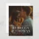 Un moderno superpuesto con nombres grandes y una foto de sangre completa son las características de esta invitación a boda económica. Haga clic en editar para personalizar de este diseño.