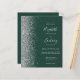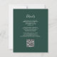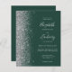 El borde izquierdo de esta elegante y moderna invitación a la boda incluye un falso borde purpurina plateado. El texto del personalizable combina la escritura a mano gris plateado, el copperplate y las fuentes cursivas en un fondo verde esmeralda. Añada detalles adicionales en la parte posterior, junto con un código QR para ayudar a sus huéspedes a visitar su sitio web boda.