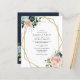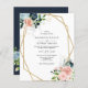 Invitación a la Boda Geométrica de Floral Rubor Gold de la Marina Rustica de Acuarela Presupuestaria. Bouquet de flores azul marino y Rubor rosadas con acento dorado