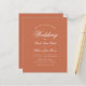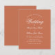 Una simple y minimalista invitación a una boda económica. Sólo tiene texto blanco sobre fondo de terracota. La palabra Boda y los nombres están escritos en un guión caligráfico elegante. La terracota es de color marrón rojizo, moderno, natural y terrenal.