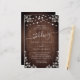 Esta asequible invitación a la boda incluye gráficos de bonito sobre un fondo rústico de madera oscura acentuado con luces de cuerda. Haga clic en el botón personalizar para obtener más flexibilidad en la modificación del texto. En nuestra tienda, zazzle.com/store/doodlelulu, se encuentran disponibles variantes de este diseño, diferentes tipos de papel y productos de coordinación. Contáctenos si necesita este diseño aplicado a un producto específico para crear su propio elemento de coincidencia único! ¡Muchas gracias por ver un DoodleLulu por el diseño de los bichos de 2 de junio!