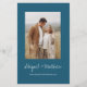 El presupuesto personaliza esta invitación estilo Boho Simple Elegante Oscuro Verde azulado y Blanco con tu mensaje y detalles con una elegante foto en la parte de atrás. Esta invitación minimalista incluye una elegante tipografía manuscrita con un color moderno para la celebración especial del Día de la Boda.
