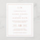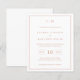 Una sencilla invitación a bodas con un diseño moderno y elegante, con su monograma de dos letras en la parte superior, un diseño de fecha audaz y sus detalles rodeados de un delgado borde. Todos los elementos de diseño están en color rosa dorado falso rosa sobre un fondo blanco y pueden cambiarse en la herramienta de edición de diseño. Una moda y un diseño de diseño, ideal para una pareja minimalista.