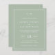 Una sencilla invitación a bodas con un diseño moderno y elegante, con su monograma de dos letras en la parte superior, un diseño de fecha audaz y sus detalles rodeados de un delgado borde. Todos los elementos de diseño están en blanco sobre un fondo verde de sabio y pueden cambiarse en la herramienta de edición de diseño. Una moda y un diseño de diseño, ideal para una pareja minimalista.