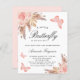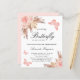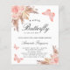 Para una moderna ducha tipo boho. Un fondo blanco en la parte delantera. Decorada con rosa de oro y flores rosadas, rosas, pampas y mariposas. Personalice y agregue un nombre y detalles del fiesta. Atrás: fondo rosa rubor