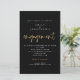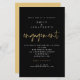 Invitación a la participación simple de guiones negros y dorados. A un precio más económico, EL tamaño de los ENVELOPES OPCIONALES ES UN POCO MÁS GRANDE A 6,75" x 9" aprox. Estilo minimalista moderno en tipografía clásica en blanco, oro y negro. El compromiso se basa en un estilo moderno de escritura a mano. Personaliza fácilmente el resto del texto a tu propia persona. También puede cambiar el fondo y los colores del texto si lo desea a través del personalizar.