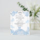 Desenmascara el encanto encantador de tu celebración de quinceañera con unas polvorientas invitaciones con temas de vestido azul. Estas invitaciones hechas a medida, inspiradas en las exuberantes y polvorientas flores azules y las extravagantes mariposas, no sólo marcan la expectativa del evento, sino que también dan a entender el impresionante vestido rojo de las quinceañeras. Se completan con detalles de confeti y un acento de tiara, que encarnan la grandeza de celebración del día especial.