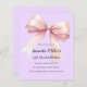 Lavanda suave, fondo violeta, decorado con un gran arco rosado. Personalice y agregue un nombre y detalles del fiesta. 1 hoja = 1 borde impreso de invitación al borde.
