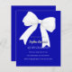 Fondo de color azul real, decorado con un gran arco blanco. Personalice y agregue un nombre y detalles del fiesta. 1 hoja = 1 borde impreso de invitación al borde.