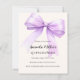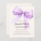 Un fondo beige suave de color crema, decorado con una gran espliego, un arco violeta de color violeta. Personalice y agregue un nombre y detalles del fiesta. 1 hoja = 1 borde impreso de invitación al borde.