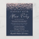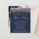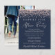 Elegancia de color azul marino oscuro y asequible, invitación boda privada e invitación a la boda. El frente presenta un purpurina rosa de imitación de oro confetti y "Feliz eterno después del Fiesta" en una mezcla de tipografía de oro rosa claro y un guión de oro rosa moderno y moda. Personalice su invitación e invitación y agregue sus nombres en un script tipo firma. En el reverso aparece la foto de su boda, los nombres y la fecha del boda.