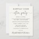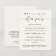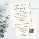 Elegante y económico diseño de crema ligera o invitación boda privada y recepción de boda o fiesta de celebración. La parte frontal incluye "Feliz siempre después del Fiesta" en una mezcla de tipografía simple y un guión elegante con intercambios; personaliza tu invitación e invitación y agrega tus nombres en un guión tipo firma. En el reverso, agregue la dirección del sitio web de su boda para crear un código QR para que los huéspedes puedan escanear las fotos de su boda, todos los detalles y el RSVP en línea, y agregue sus nombres y fechas de boda y recepción.