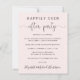 Elegante elegancia rosa claro y asequible, invitación boda privada y recepción o celebración de fiesta de invitación. La parte delantera incluye "Feliz eterno después del Fiesta" en una tipografía simple y un guión elegante con intercambiadores; personaliza tu invitación e invitación y agrega tus nombres en un guión tipo firma. En el reverso, agregue la dirección del sitio web de su boda para crear un código QR para que los huéspedes puedan escanear las fotos de su boda, todos los detalles y el RSVP en línea, y agregue sus nombres y fechas de boda y recepción.