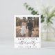 Elegancia económica o invitación boda privada y invitación a la boda en persona. La parte delantera muestra tu foto, "Feliz eterno después del Fiesta" en una mezcla de tipografía simple y un guión de moda con toques y tus nombres y fecha de boda o recepción unidos por un corazón. En la parte posterior, introduzca la dirección del sitio web de su boda para crear un código QR para que los huéspedes puedan escanear las fotos de su boda, todos los detalles y el RSVP en línea, y agregue sus nombres en un guión con estilo de firma. Este papel semibrillante de presupuesto es similar en peso al papel fotográfico. También está disponible una versión más grande del stock de tarjetas 5x7 (envíenos un mensaje para el enlace).