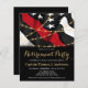 Celebra tu retiro e invita a amigos y familia a tu retiro de bomberos con esta invitación a retiro de bomberos de la delgada línea roja - diseño de la bandera estadounidense en colores de la bandera de los bomberos , moderno diseño negro rojo . Personaliza con el nombre, el departamento de bomberos, la dirección y los detalles del rsvp. Esta invitación a la jubilación de bomberos se puede usar para graduarse como bombero, simplemente cambiar el texto al personalizar. Vea nuestra colección para encontrar regalos de retiro de bomberos, favores de partido y suministros. DERECHOS RESERVADOS © 2020 Judy Burrows, Black Dog Art - Todos los derechos reservados. Invitación a retiro de bombero de línea roja delgada