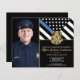 Este diseño incluye una bandera de la fuerza policial con rayas blancas y negras, y una delgada franja azul. La insignia de la policía y el texto de oro se asientan sobre todos los detalles del fiesta para los detalles del fiesta de retiro del oficial de policía, sheriff, capitán o jefes que se retira. Personalizar este diseño aún más con la foto del policía que se retira.