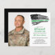 Ligeras invitaciones a la jubilación militar en la Línea Verde o invitaciones de los militares a ir de fiesta. Estas invitaciones del partido de la Línea Verde Delgada son perfectas para una jubilación militar, despliegues militares, celebración de la casa de bienvenida militar, graduación militar y soldados que se van fiesta. Bandera delgada de la Línea Verde representa a todo el ejército, ejército, protección de fronteras, patrulla fronteriza, oficial de conservación, guardabosques, guardián de juegos, aplicación federal de la ley. Personalice esta invitación a la bandera militar con los detalles del evento, nombre y fiesta de sus soldados. Vea nuestra colección de regalos militares de retiro, regalos de graduación militar, favores partidarios y suministros. DERECHOS RESERVADOS © 2021 Judy Burrows, Black Dog Art - Todos los derechos reservados. Invitación a retiro de foto de Personalizado militar presupuestado
