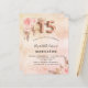 Un fondo de color oro rosa, color rosa oscuro, fino y de aspecto metálico. Decorada con rosa de oro y flores rosadas, rosas, pampas hierba. Personalice y agregue un nombre y detalles del fiesta. El número 15 se escribe con un tipo de letra de estilo globo.