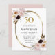50.ª Invitación a la Fiesta Floral Metálica de Oro de los Rosas de cumpleaños... Nuestra asequible invitación floral 50th Birthday party incluye ramos de hermosas rosas rosas rosas rubias curvadas alrededor de un falso marco dorado metálico de oval creando un elegante borde para el texto de la invitación dentro. Encima del texto de la invitación hay un gráfico con el número de oro 50 que le da un toque de lujo a esta invitación de fiesta de cumpleaños única. La parte trasera de la tarjeta es un delicado rosa rubor que se encuentra dentro de los propios rosas. Todo el texto se puede revisar fácilmente con sus propios detalles en la plantilla de personalización.