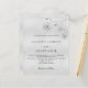 Una invitación a la boda moderna, elegante y minimalista. Fondo de aspecto metálico falso plateado decorado con flores plateadas. Personalice y agregue sus nombres y detalles del boda. Letras de color negro.