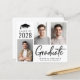 Moderna invitación para una fiesta de graduación económica con un collage de 3 fotos, "Graduado" en letras grandes y el año de clase, nombre y escuela o universidad del graduado en simple tipografía. Agregue los detalles de su fiesta al reverso.
