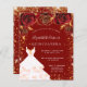 Una invitación moderna, elegante y glamurosa para una fiesta de 15 años en Quinceañera. Un fondo rojo con un polvo falso purpurina de oro, un vestido blanco y rosas rojas, flores. El nombre está escrito con una escritura de estilo con letras a mano moderna. Personalice y agregue los detalles de su fiesta.