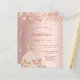 Una invitación moderna, elegante y glamurosa para una fiesta de 16 y 16 años. Un fondo dorado rosa con chispas falsas y un vestido de oro rosa. El nombre está escrito con un guión moderno de estilo con letras de color rosa oscuro y dorado. Personalice y agregue los detalles de su fiesta.