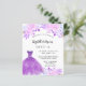 Una invitación moderna, elegante y glamurosa para una fiesta de 16 y 16 años. Un fondo blanco con flores rosas rubias, un vestido de bola morada. El nombre está escrito con una escritura de estilo con letras a mano moderna. Personalice y agregue los detalles de su fiesta. 1 hoja = 1 borde impreso de invitación al borde.