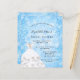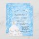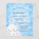 Para una elegante y glamorosa ducha de novias. Un fondo azul de copo de nieve. Decorado con un vestido blanco para un fiesta de temática invernal. Personalice y agregue un nombre, edad y detalles del fiesta. El nombre se escribe con un guión de estilo con letras a mano